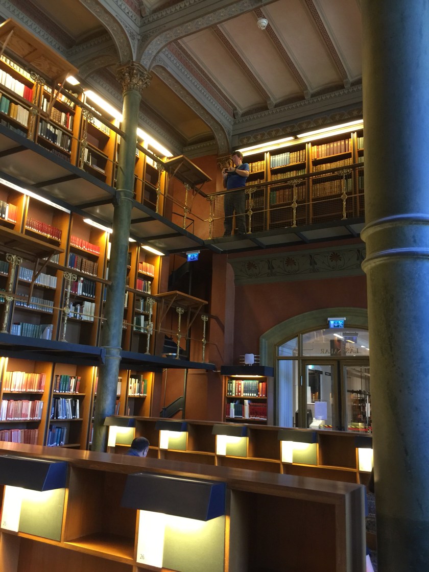 Most of the books in the library are in two large underground stacks, each five stores high. We couldn’t visit those stacks but the building. Itself and the scope of the library is. Impressive.