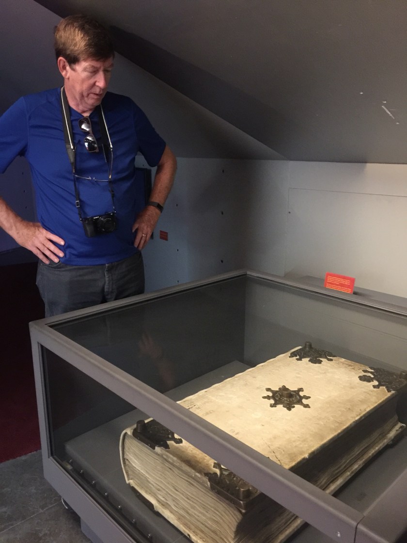 The library has the Codex Gigas which is a velum manuscript created between 1204 and 1230. The book is 35 inches by 19 inches and weighs 165 pounds.