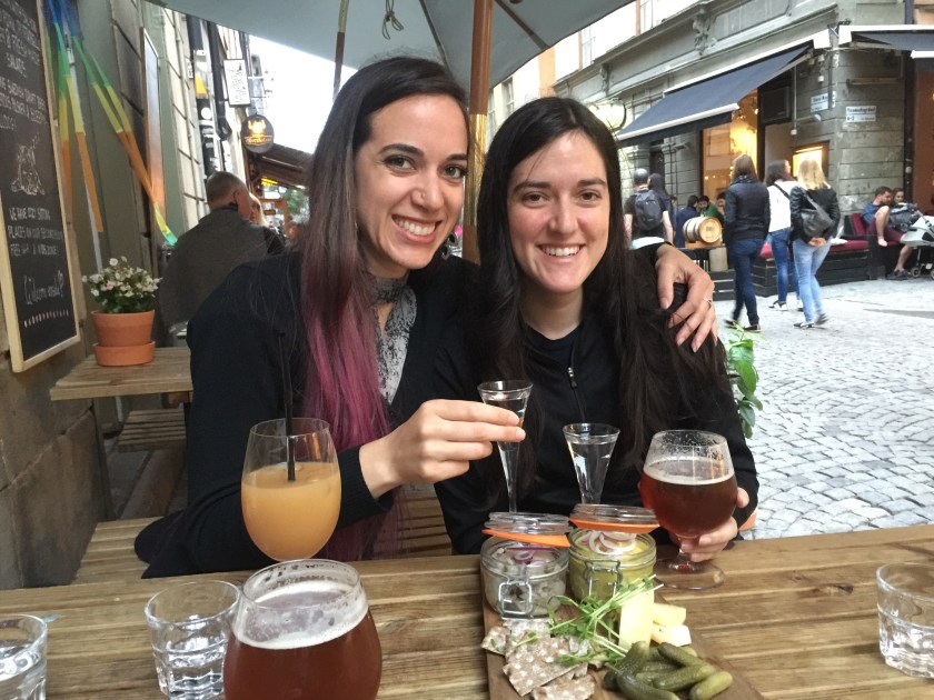 We ate dinner at an outside restaurant in old town. We started with herring, pickles, crackers and vodka.