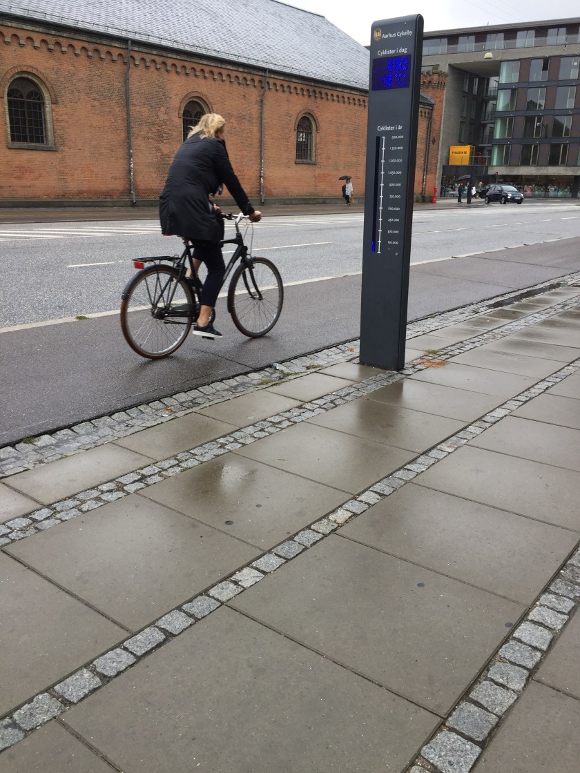 There are a lot of people riding bikes in Aarhus. On the way to the museum we saw a sign that was counting how many bikes had gone by today and how many for the year.
