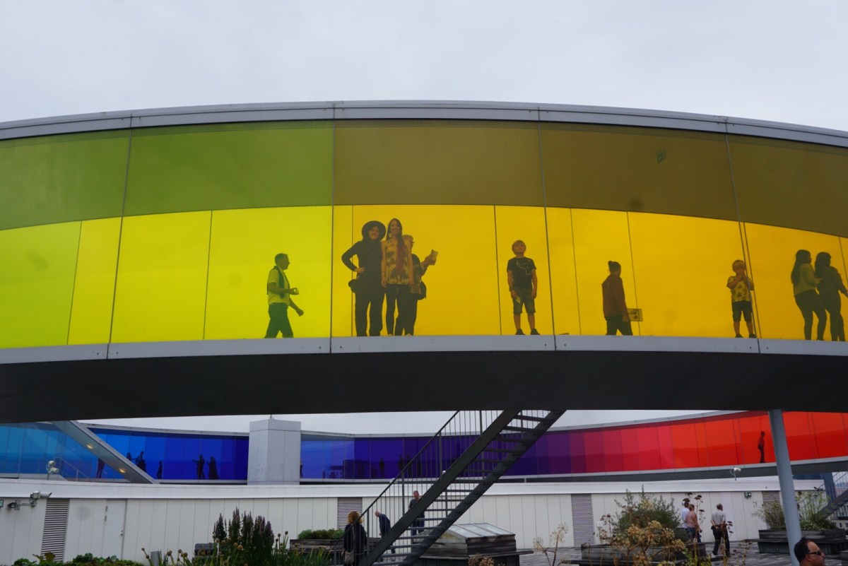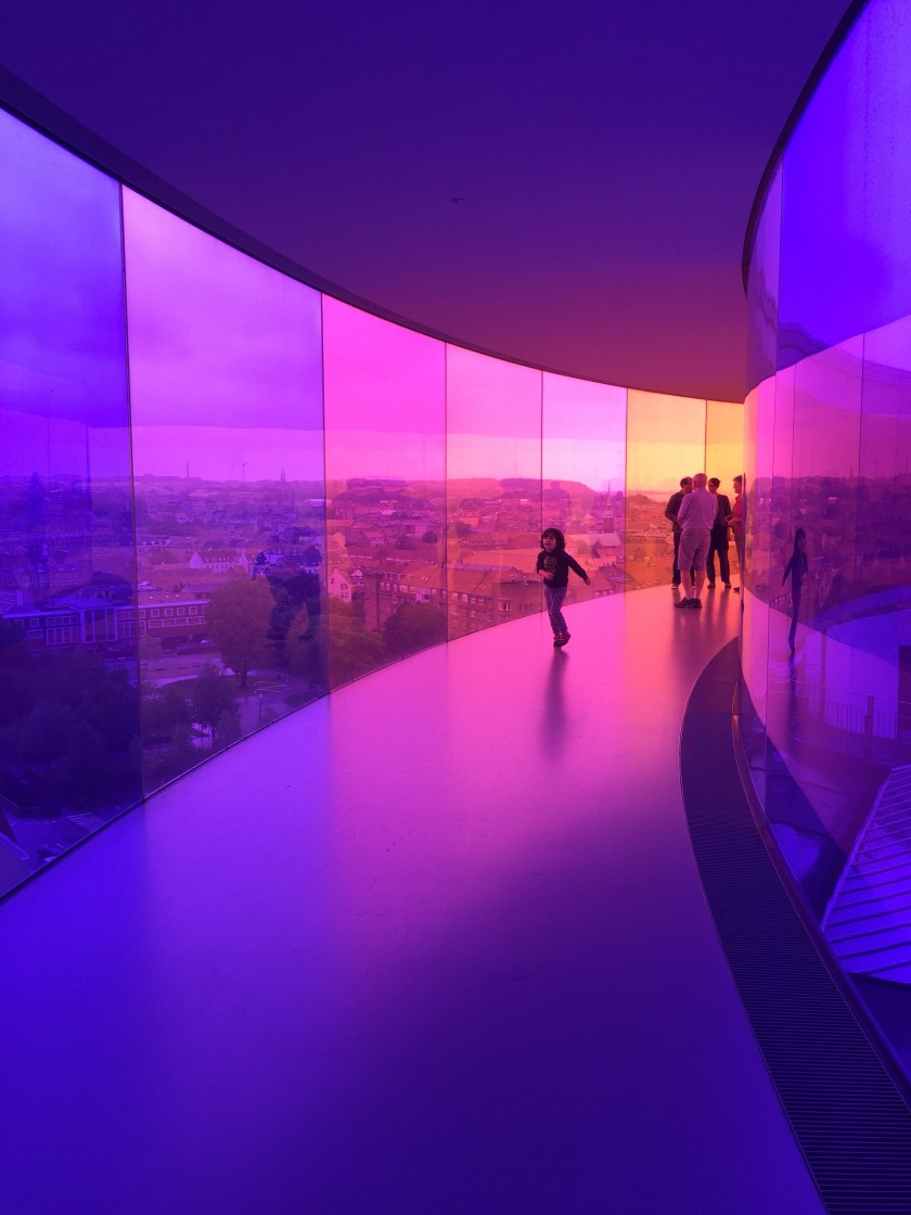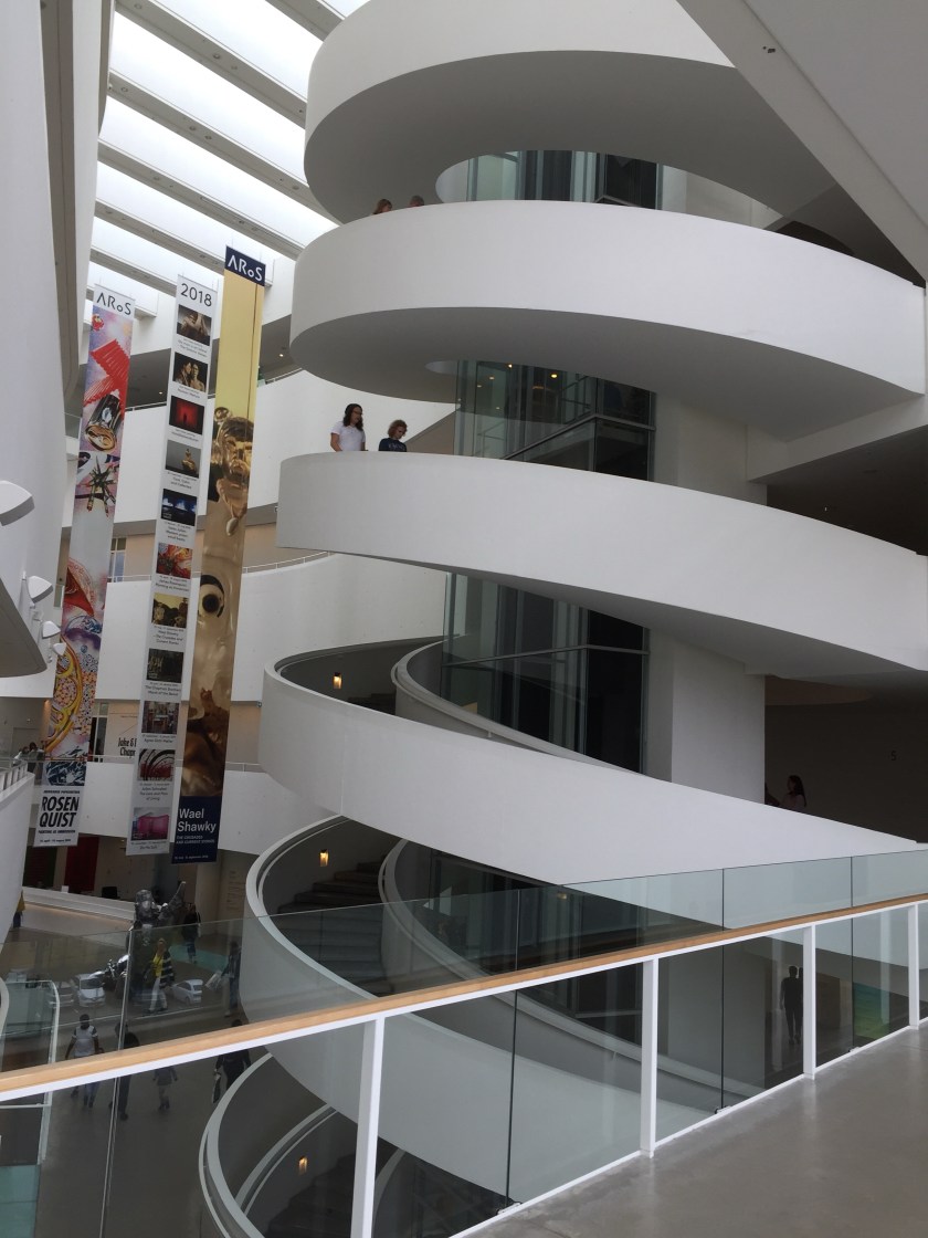 We visited the ARoS Aarhus Kunstmuseum. It is a nine story modern art museum. On top of the museum is a spectacular 360 degree rooftop walkway called Your Rainbow Panorama. The architecture alone was reason enough to love this museum.