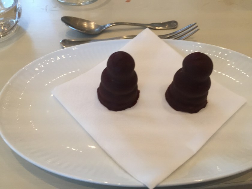 Tonight we are staying in Hornbæk in a lovely hotel overlooking the lake with a view of the ocean to the north. From our window we can see Sweden across the water. We ate dinner in our hotel. This is the beef tenderloin that Duke and Vicky shared and the flødebolle that I had for desert.