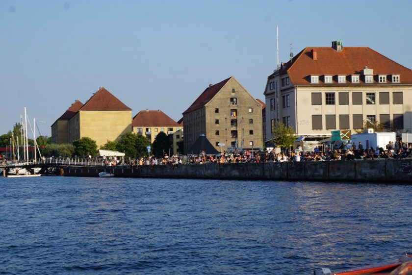 Next we walked through Christiania Freetown. The settlement was created in the 70s when squatters took over an abandoned military base. Apparently the settlement has been run somewhat separately from the rest of Copenhagen since then. The bus tour narrative said that weed used to be sold freely but isn’t any more. But as we walked down Pusher Street we saw about twenty different guys selling quite openly. The aroma was very strong. As we left the area we saw a van full of police pull up and empty out heading towards the area we had just left. We decided to retrace our route. This time as we walked down Pusher Street their were lots of police and no one selling weed.