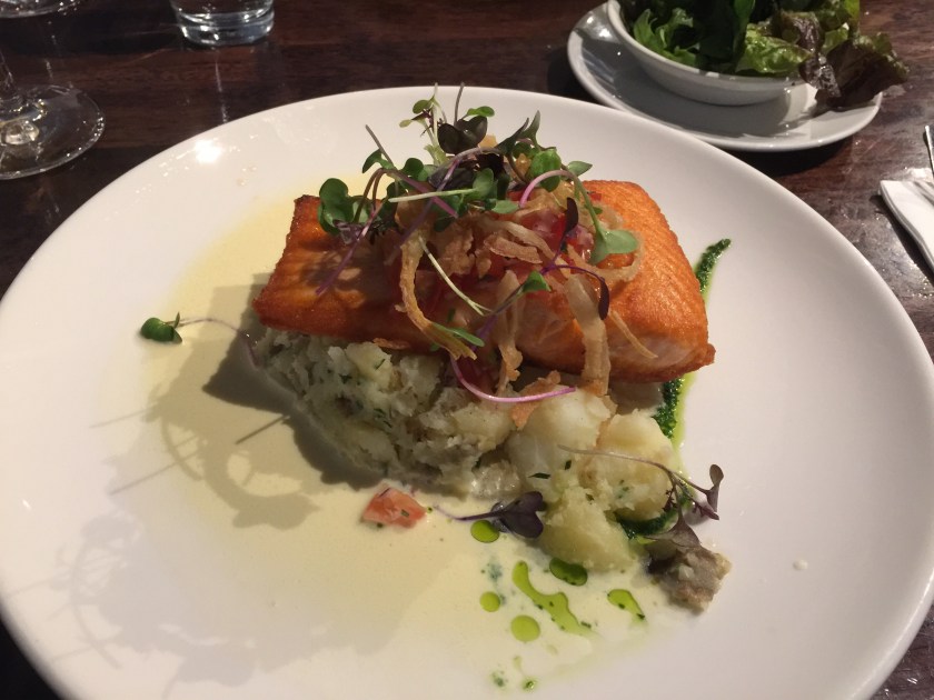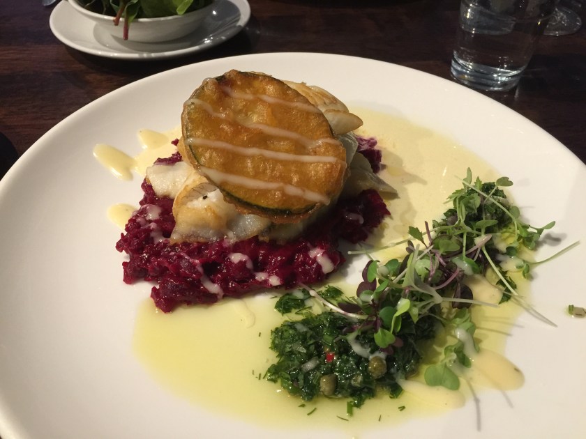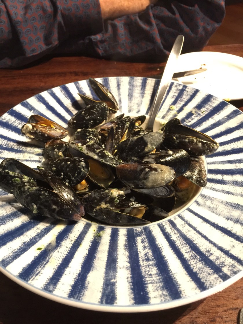 For dinner we ate at a great restaurant called Fishy Fishy. We started out with gin and tonics made with local Kinsale Blacks Gin. Then we shared mussels. For the main course Duke had brill and I had sea trout.