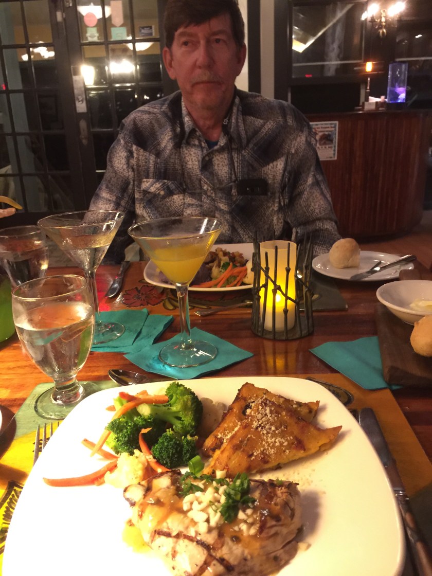 When we got back on the highway we drove around the south west corner of the island and into Hawaii Volcano National Park. We are staying a bit outside a little town called Volcano Acres Ranch B & B. For dinner we went into town and had the best meal of the trip so far at Kilauea Lodge.