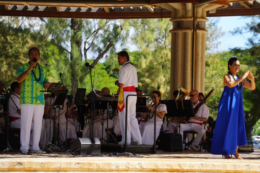 On our way back we stopped at the bandstand in the park to listen to a Royal Hawaiian Band Sunday concert of Hawaiian music. It was idyllic.