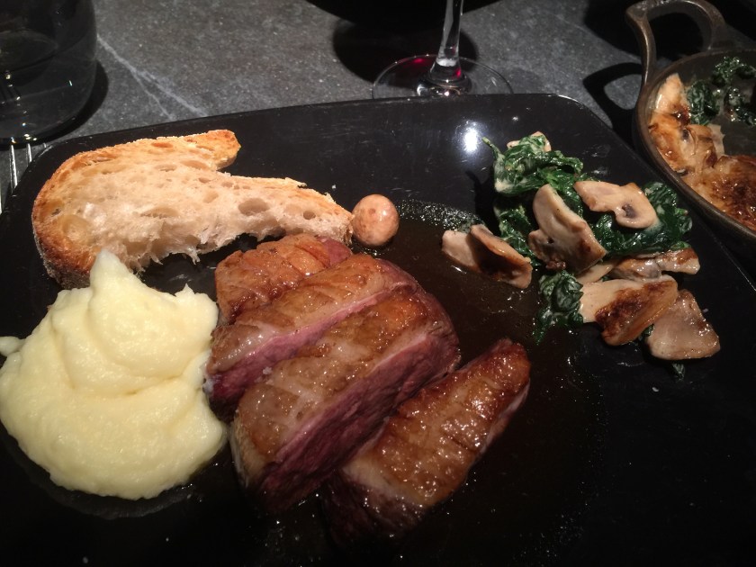 We ate dinner at a restaurant near our hotel, L’Atelier Maître Albert. Our meal was very good. I had roast bream fish and Duke had roast duck. We had a spinach mushroom gratin as a side dish. For desert we had ewe cheese with a cherry jelly.