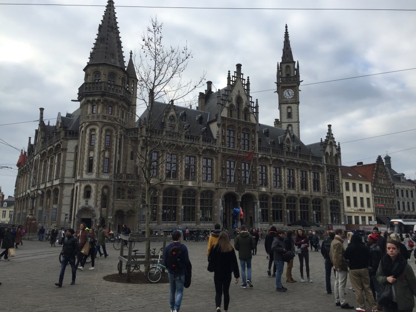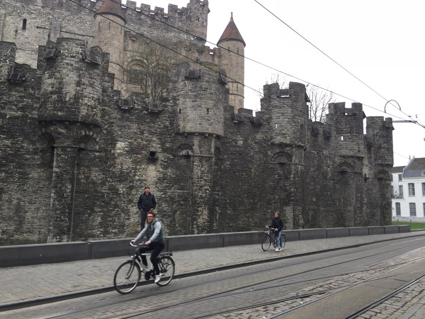 In Ghent we walked from where the bus dropped us off about a mile to our hotel in the center. In the Middle Ages Ghent was a wealthy seaport. As a result It is absolutely full of beautiful old buildings. After checking in to our hotel we had a lot of fun wandering around the trafic free central area.