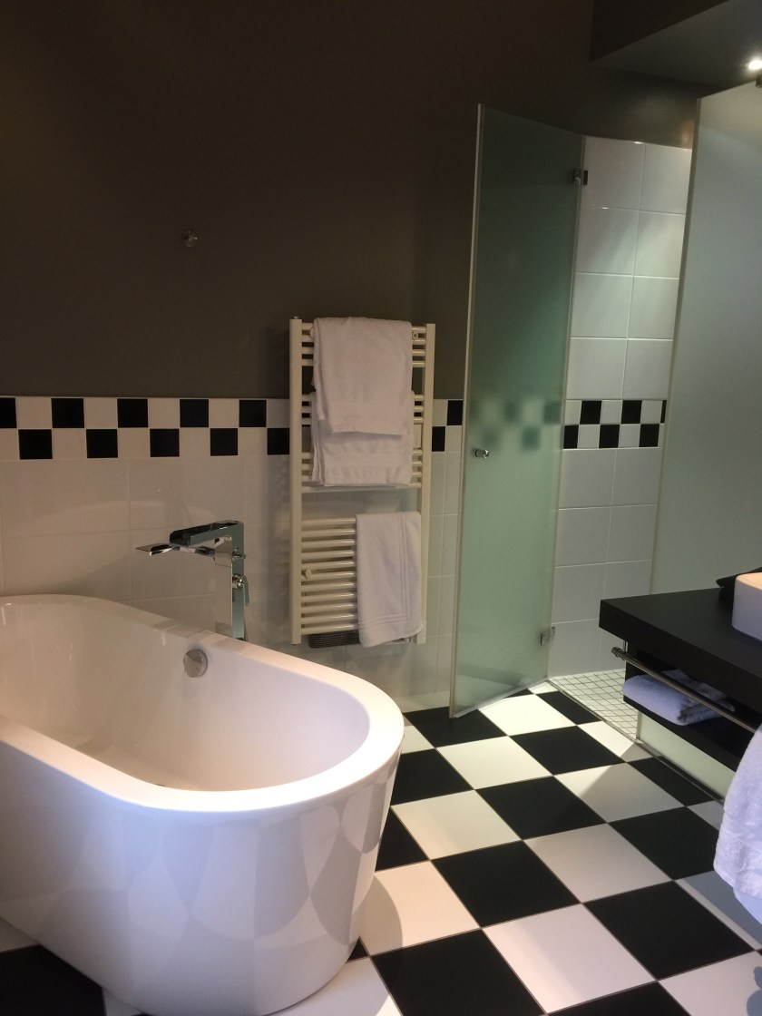 The shower in our room here at Villa Élyane in Colmar is perfect! It is one of the only 10’s I have ever rated a hotel shower. Big, bright, five shower heads, heated towel rack. Perfection!