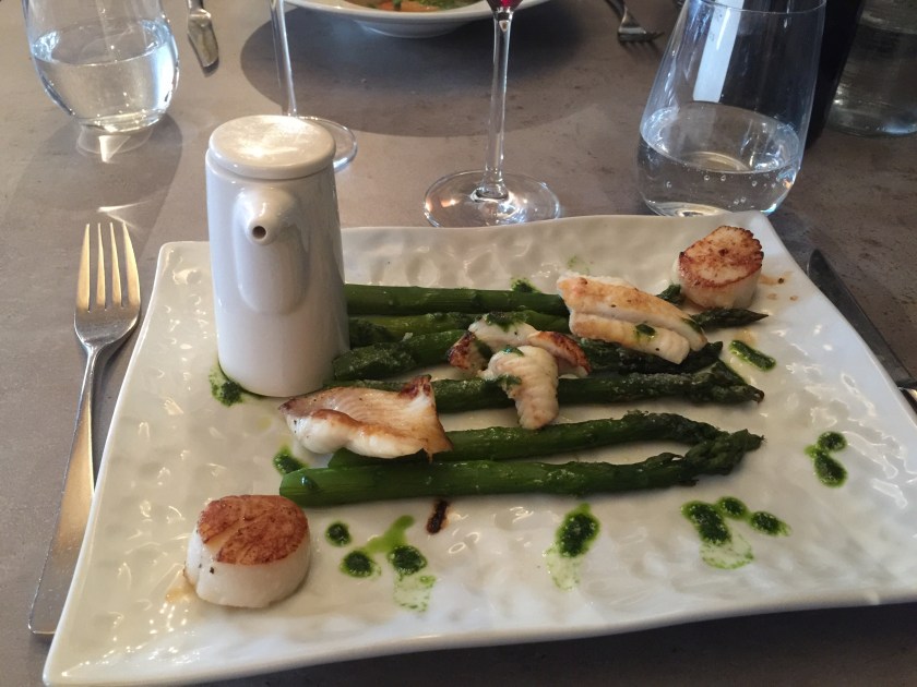 For the main course I had sole, scallops and asparagus and Duke had chicken.