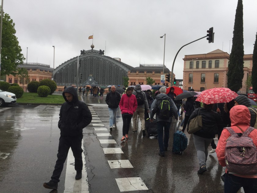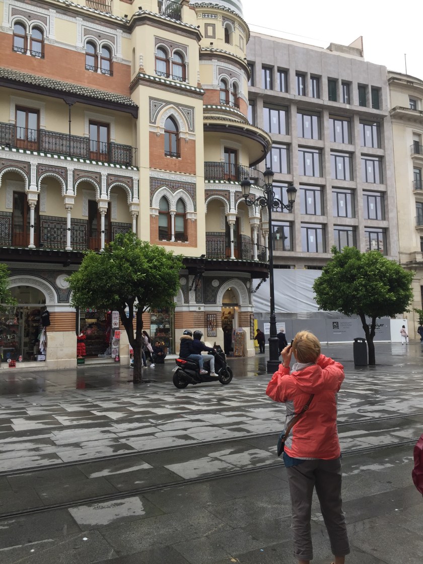 It rained off and on all day today. We walked to the train station in Madrid and then from the station in Seville to our hotel.