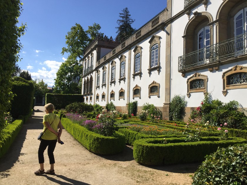 We are staying at the only Parador in Portugal. Duke and stayed at Casa Insua in February of 2016. The Parador is in a gorgeous country mansion surrounded by gardens. We had our welcome drink on the patio while Duke beat Butch playing cribbage.