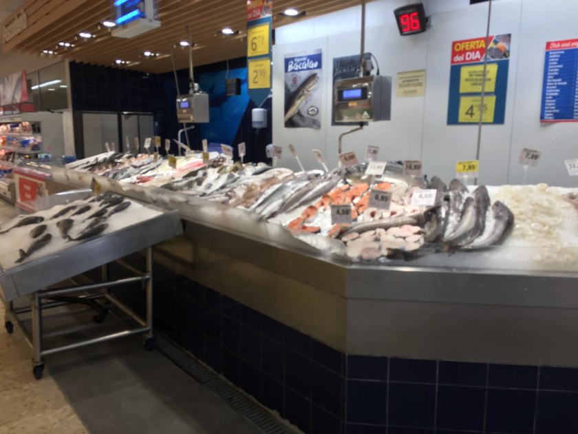 Around 1:30 we headed out of Madrid northwest towards León. We stopped for groceries about half way through the drive. Spanish grocery store fish departments are always interesting.