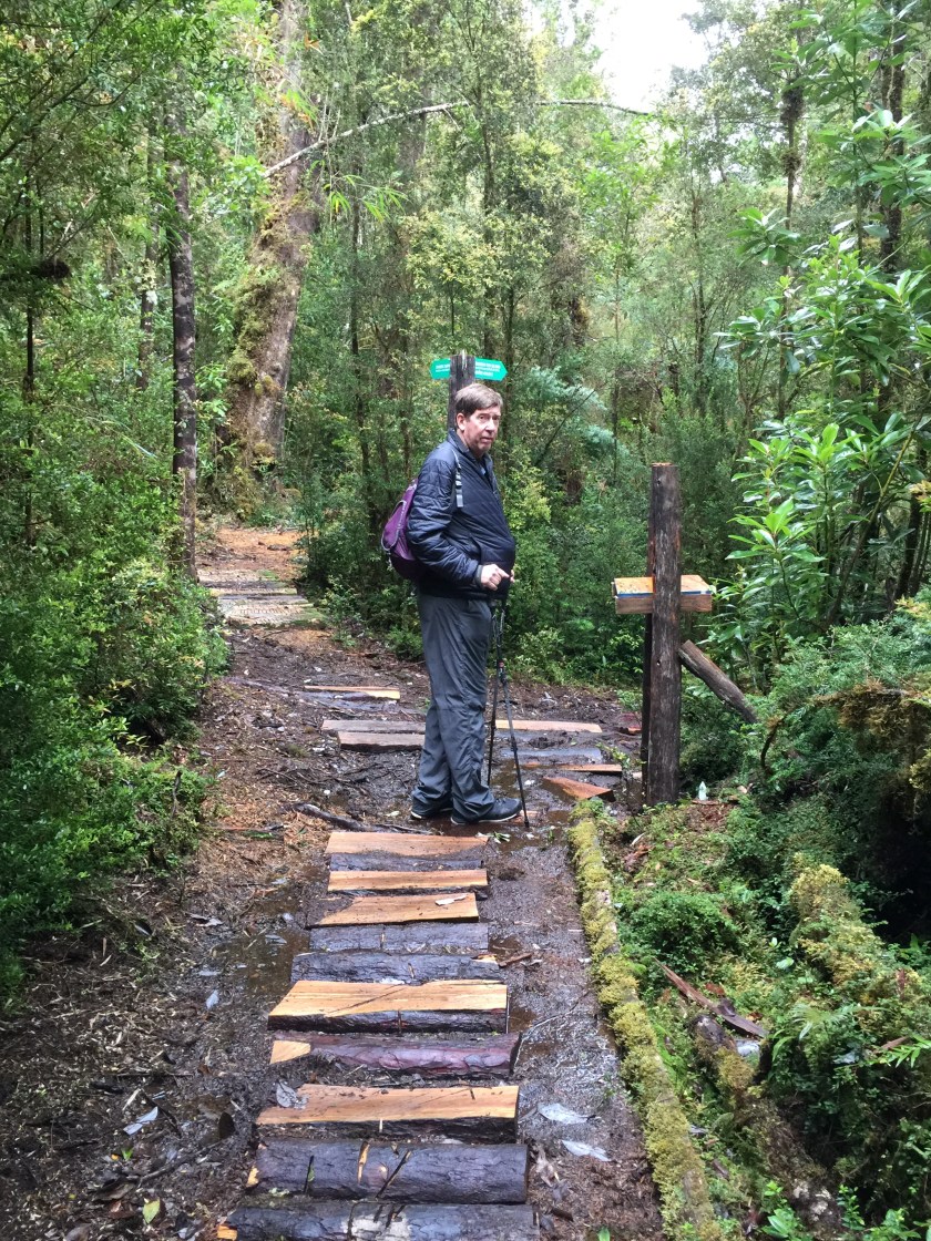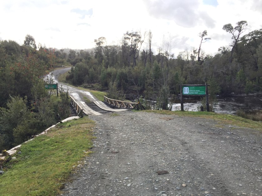 Today we hiked in Parque Tantauco. We were lucky that the weather was much better than yesterday. It rained some but there was also a bit of sunshine. We drove for more than an hour on a bumpy dirt road to get to the park. Below is a picture of the bridge right before the park entrance. It had a five ton limit!