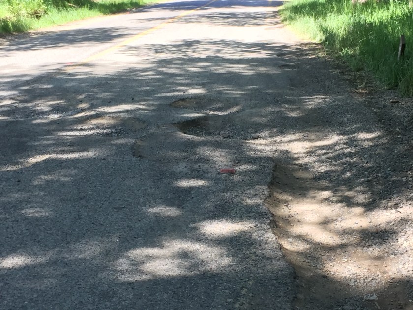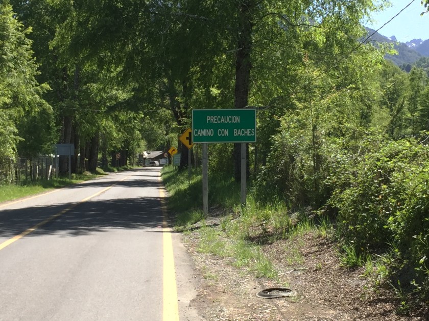 I learned a new word today. The sign below warns about “baches” in the road. We had to look it up. It means potholes. There were indeed potholes like moon craters in this section of road.