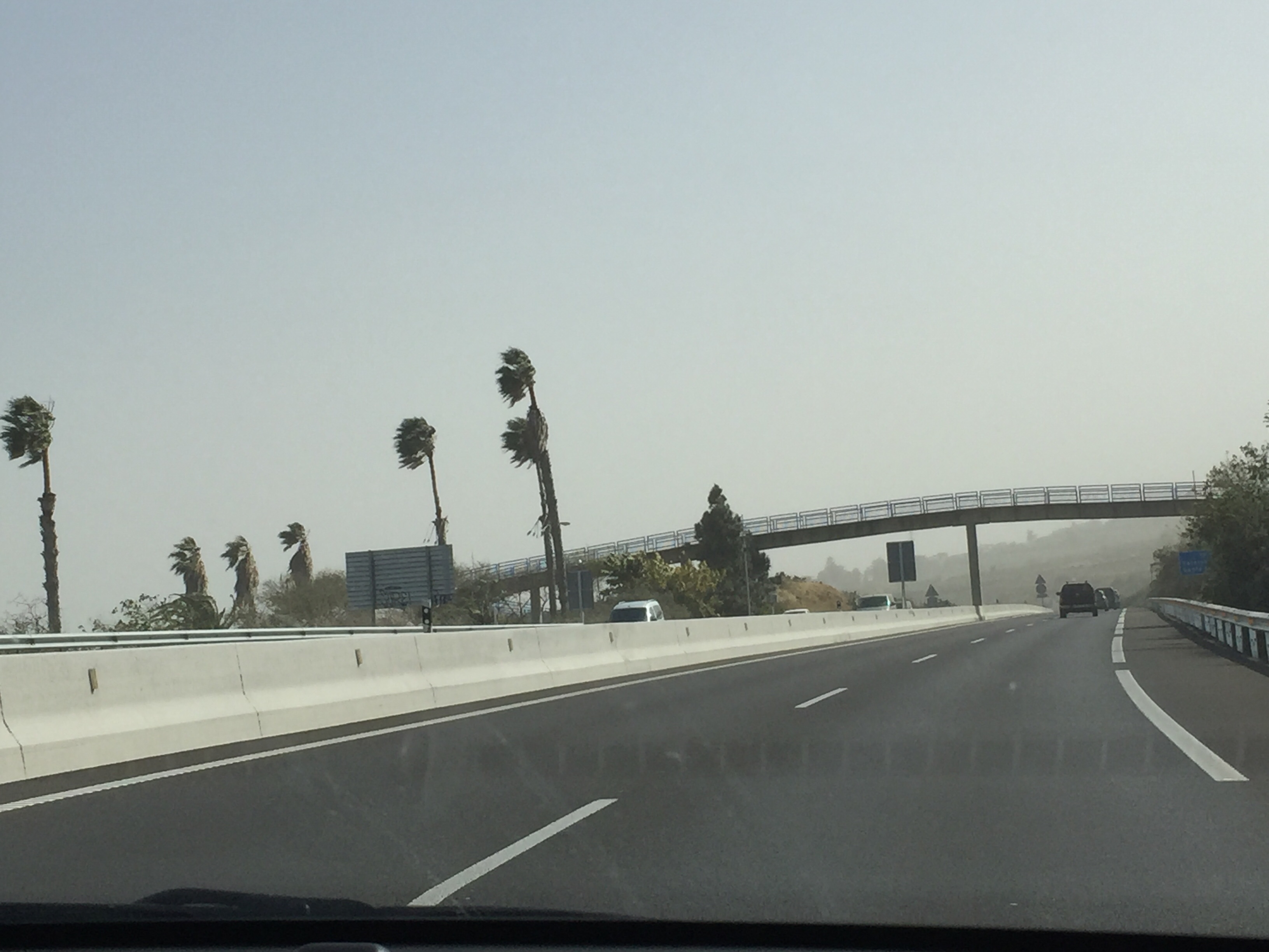 It was windy as we left and it kept getting more and more windy. The wind blew trees down and created quite an amazing drive. On top of that the wind is blowing massive amount of sand from the Sahara Desert over Tenerife. Visibility is almost zero and the sky is an eerie pink color. If you Google Tenerife dust storm you can see some amazing pictures of the dust storm from space. They call this weather phenomenon a Calima.