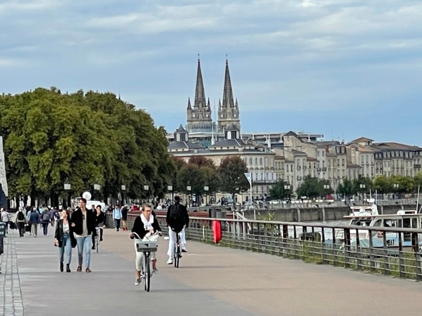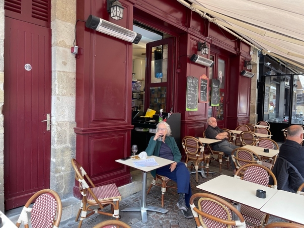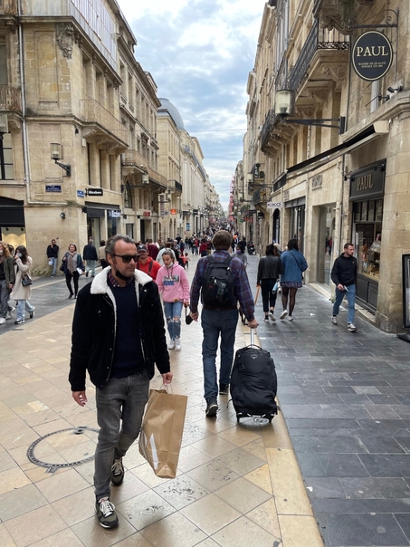 Our drive from Labastide to Bordeaux was relatively easy. But driving onto the center of a city is always a challenge. We are staying at a hotel in a great location right in the city center. The hotel had told us that we needed to book a parking spot at a parking garage in advance. We booked and paid yesterday so that when we found the entrance to the underground parking garage we just needed to show our QR code to get in. From there it was about a ten minute walk to the hotel.
