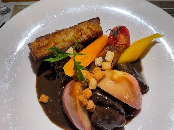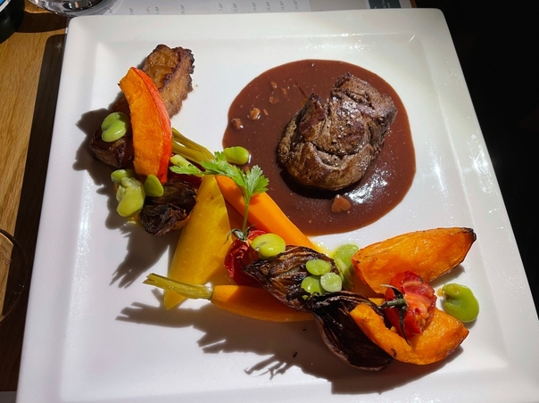 For main course Duke ordered a filet steak and I ordered venison stew. They were both tender and flavorful. We couldn’t agree on which was better.