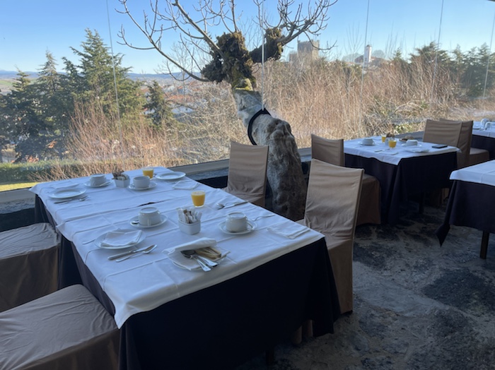The breakfast room at Pausada de Bragança had a beautiful view too and there was a tree growing out of the floor!