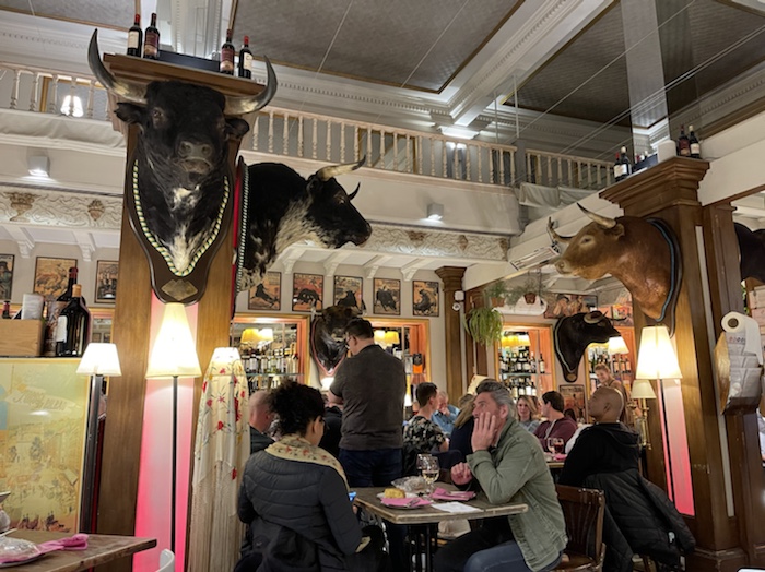 For dinner we went to a tapas restaurant with bull heads on the walls. Each head had a plaque about the famous bull.
