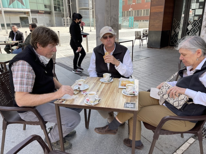 We walked to our hotel and left our bags since the rooms wouldn’t be ready for a while. Then we found a lab that was doing Covid test and walked there. Roger and Gayle got there preflight Covid tests. We found a cafe to have beers and toast the fact that we had successfully completed all today’s must do tasks.