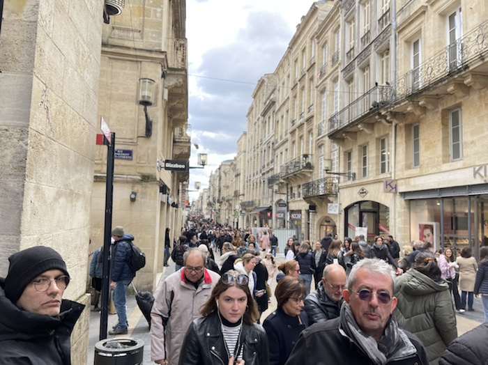 We were in Bordeaux last Fall. I really like Bordeaux. We walked to our hotel. There were a lot of people n the streets.