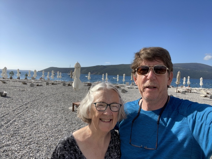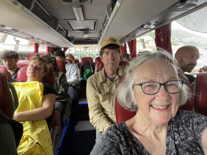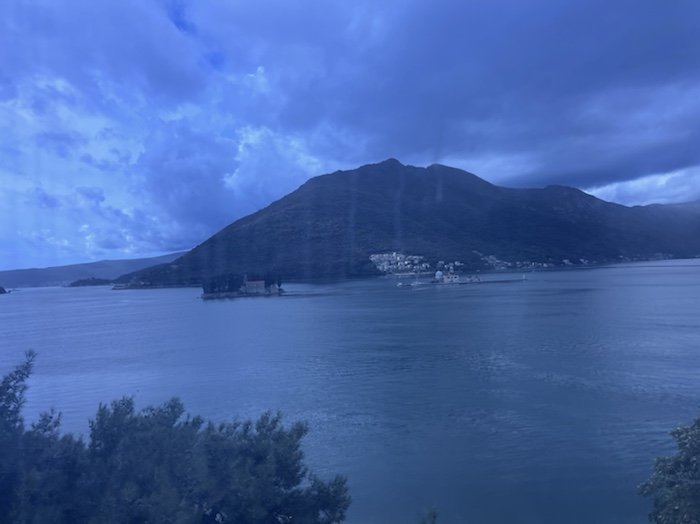 The distance we had to travel today south along the coast was only about 40 miles. But everyone had to get off the bus at the border to go through Croatian exit control and then again a mile down the road at Montenegro entrance control. So all in all the trip took about 2 hours.