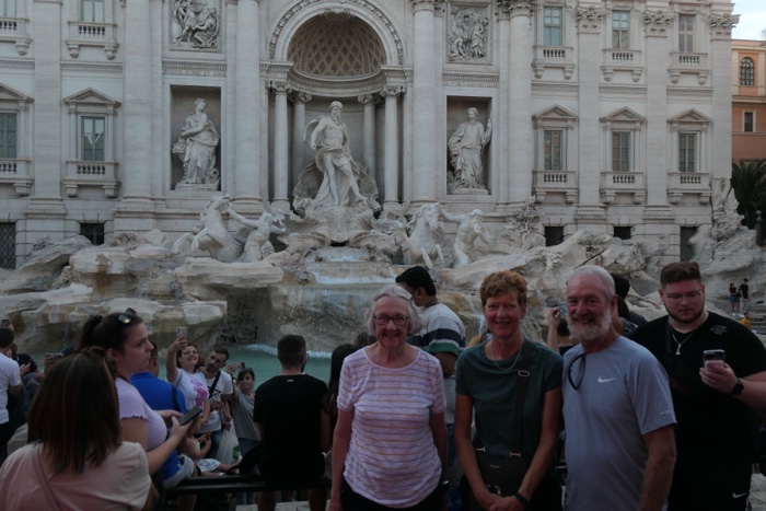 Duke’s sister Jo Ann and her husband Brian flew in today. We met them at the train station about 3:15 and walked back to the hotel with them. A bit later we went out to see the Spanish Steps and the Trevi fountain.