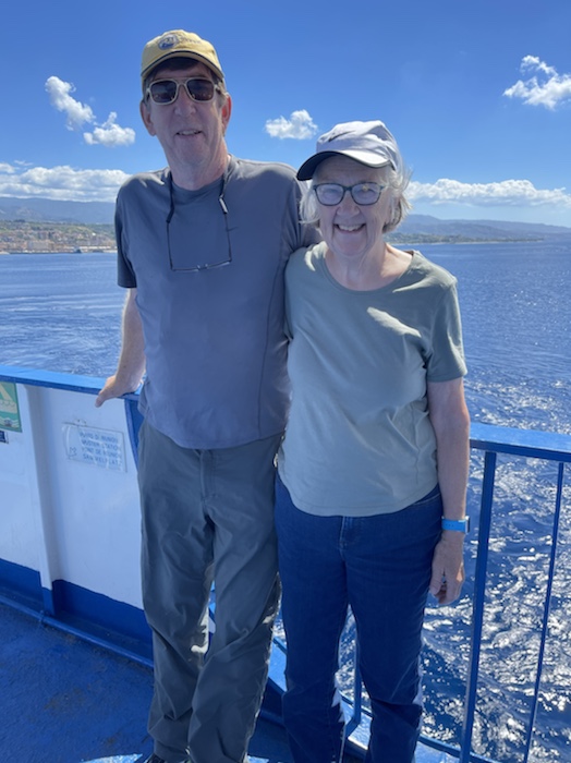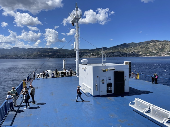 Today we continued down the Italian coast to the ‘toe’ of Italy where we caught a ferry across to Sicily. A separate ferry was loading big trucks as our ferry was loading cars. It was impressive to see the giant semis making a 90 degree turn onto their ferry.