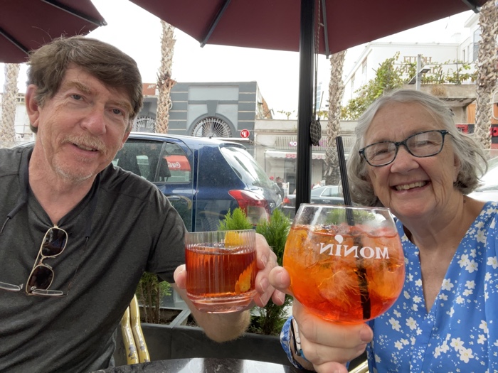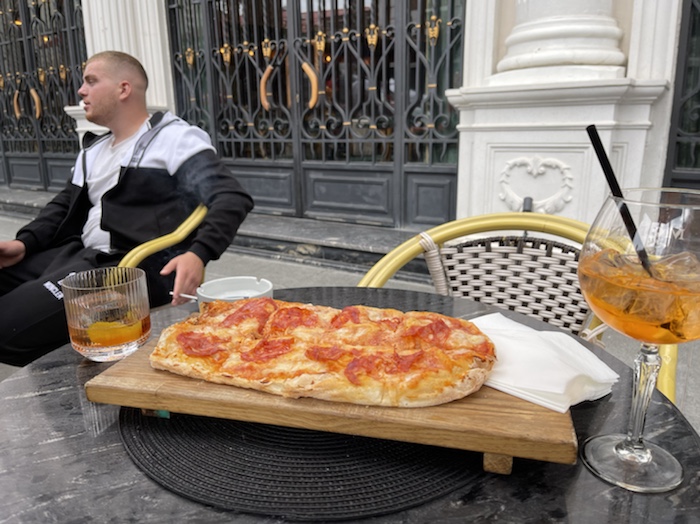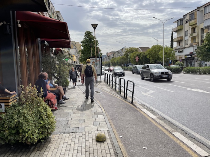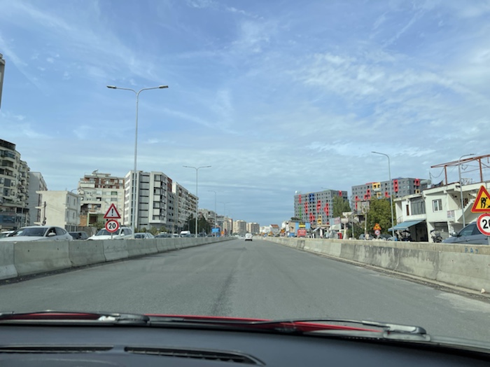 We drove back to the hotel, picked up our luggage and drove west to the town of Durrës on the coast. We had drinks and a pinsa on the sidewalk outside our hotel.