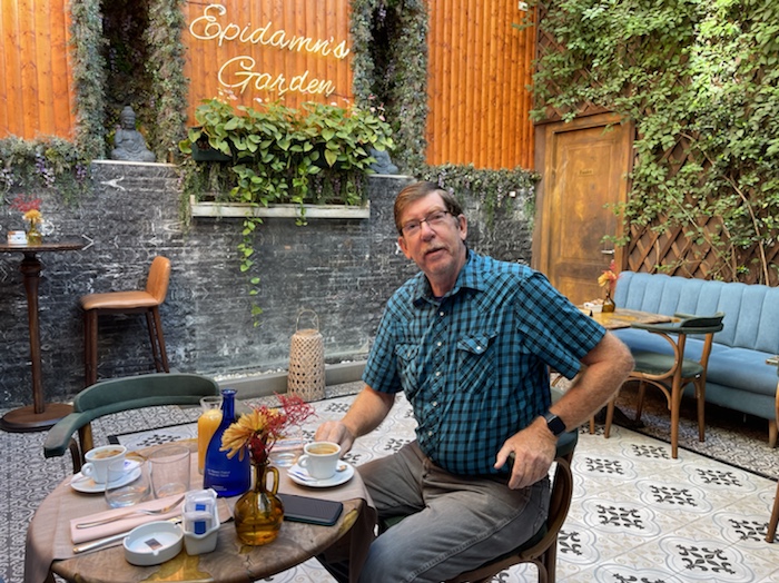 The garden tables for breakfast at the Hotel Epidamn in Durrës were idyllic. Even though the garden was inside there were lots of live plants and peaceful music.