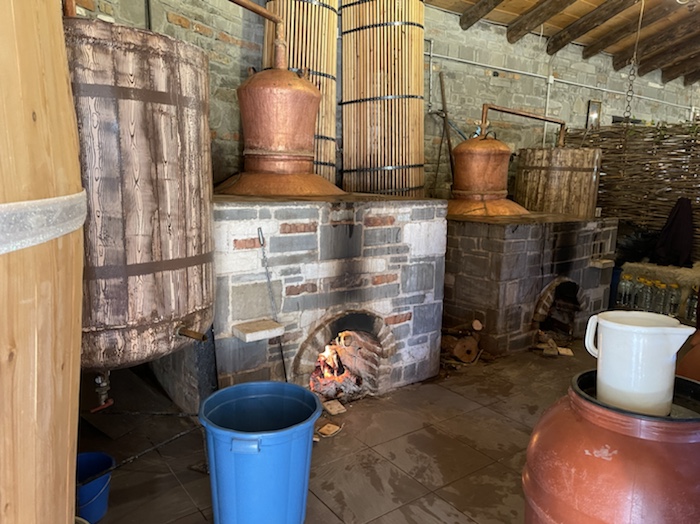 This morning when we came down to breakfast at Alpeta winery they were distilling raki in their wood fired still. it smelled fruity and warm.