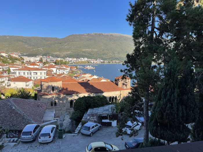 We took a taxi from the bus station in Ohrid. Unfortunately I showed the driver the address for Villa Saint Sofia instead of Villa Sofia. It took us a while to find the right place but eventually we were settled in a very nice room overlooking Lake Ohrid. Lake Ohrid is very similar to Lake Tahoe, big, clear, deep and very blue.