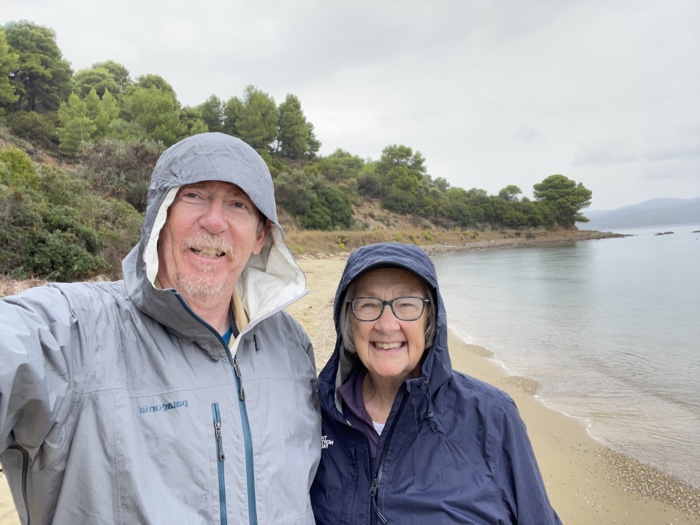 Skiathos is just under 20 square miles in size. it rained all day today. As I mentioned in my post yesterday we are definitely here in the off season. One web site I read today said that in summer the population can be 70,000 but in the off season it is about 4,000. It didn’t take us long to explore the west end of the island this afternoon. We saw a couple of beautiful beaches and almost no people.