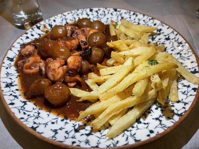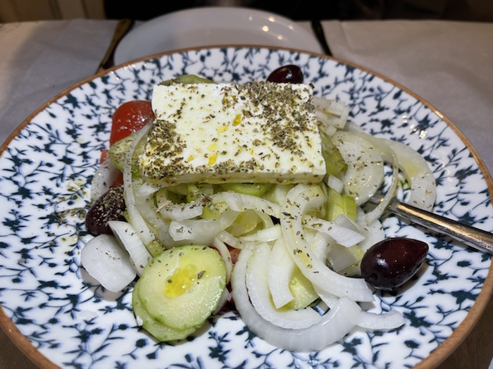 We started with a Greek salad to share. All our food was wonderful but my squid and onion in a special sauce was fantastic.
