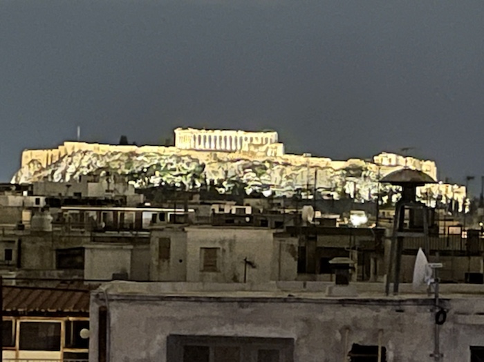 After dinner we went up to the roof of our hotel to check out the acropolis.