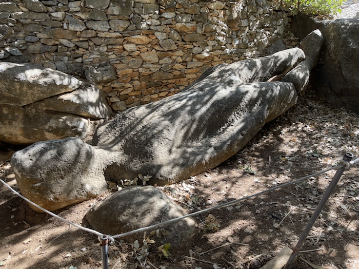 Next we stopped at the starting point of the aqueduct, a spring where there are also remains of an ancient quarry and sanctuary. We saw early Greek statues called Kouros in the Athens Archaeological Museum. Apparently in the ancient quarry they used to roughly cut out the rock for the statue and then ship it to its destination for finishing. We saw a statue in progress that appears to have been broken when they were transporting it.