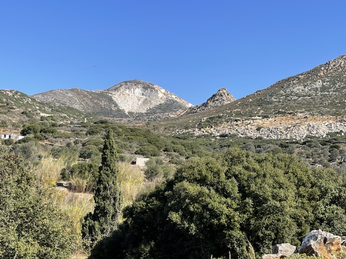 From the mountain side we had hiked up to see the ancient quarry we could see more modern marble quarries across the valley.
