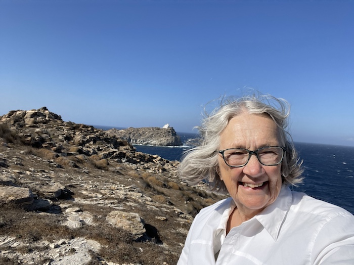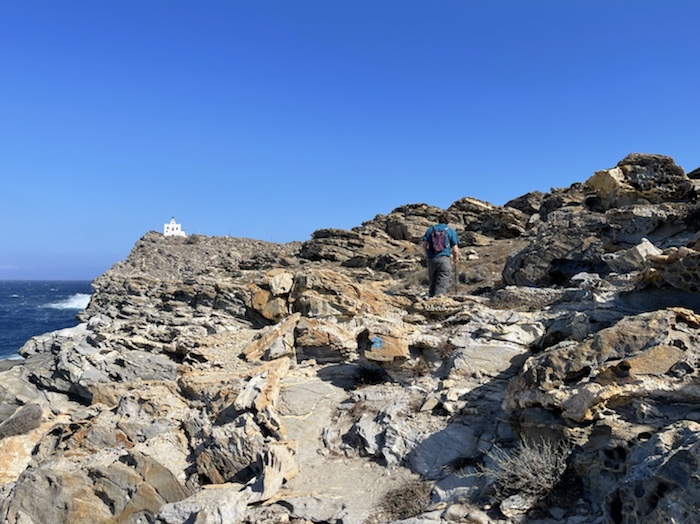 Today this area of the Aegean Sea had twenty mile an hour winds. I’m glad we weren’t taking a ferry! We decided to take a hike in Paras Park. We went out to the lighthouse. It was a great hike. At times it was sheltered from the wind and at times it was blowing a gale!