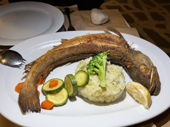 We had such a great dinner at Karina Restaurant last night that we decided to go back again tonight. We told Karina that our fish last night was so good we wondered what she would recommend tonight. She told us what was fresh and we chose the mussels and the fried cod. They were devine!