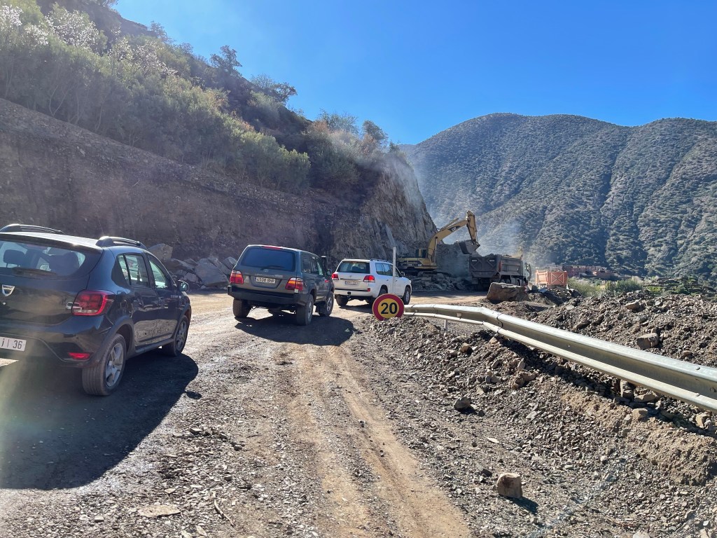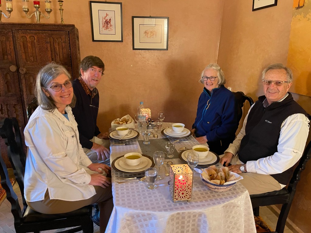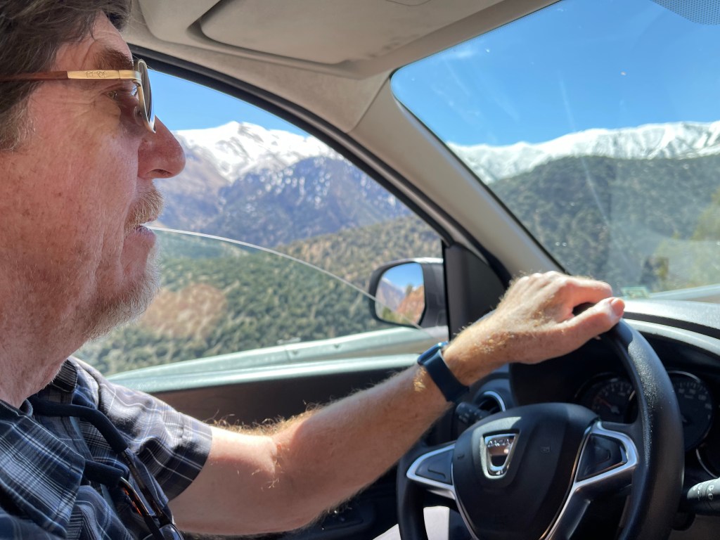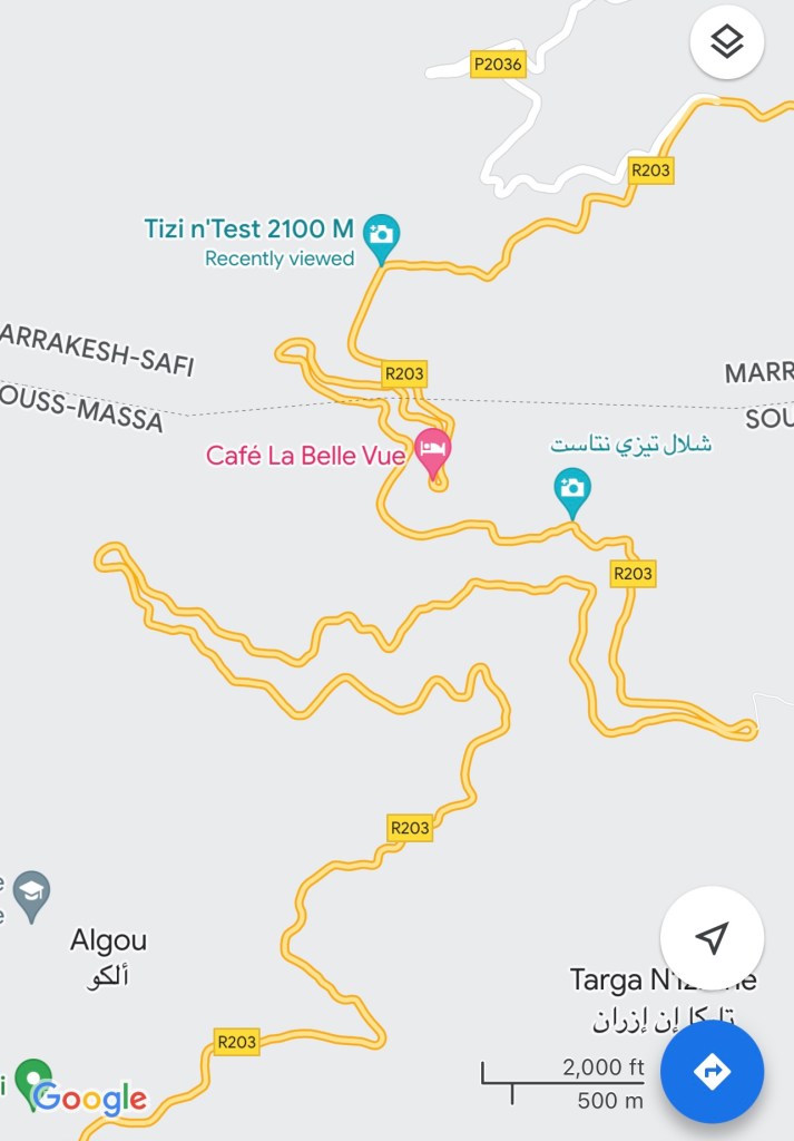 Today we continued driving south and a bit west to the town of Oulad Berhil. The distance was only 72 miles but it took us 4 hours. We went through the High Atlas Mountains. The scenery was stunning, the road was narrow and windy and we went over an almost 7000 foot pass.