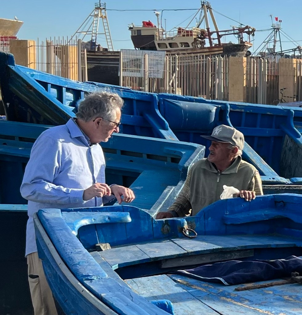 After arriving in Essaouira we went for a walk along the beach. Duke and Roger went off with an old guy who offered to show them the fishing boats. They learned all about the fishing fleet.