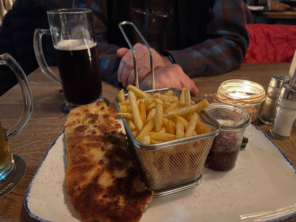 Bratwurst and sauerkraut. And the white shredded stuff is horseradish. It was all delicious.
