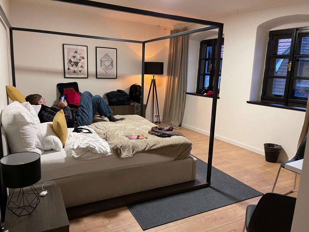 We were at the door of Pension Kristian at 5 til 3 waiting with another couple. But it wasn’t until 3:01 that they opened the door and let us in. We have a very nice room. We will be here two nights.