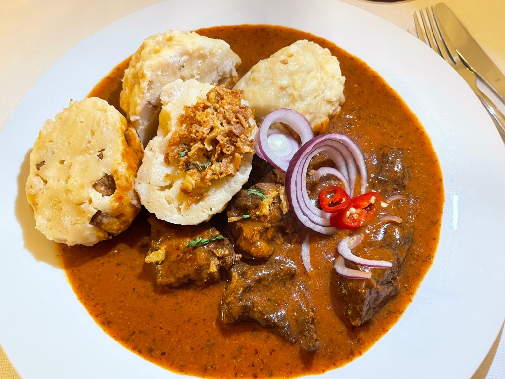 The other dish is the goulash and dumplings. It was perfectly flavored and the spices gave it a bit of a kick. It was also very good.