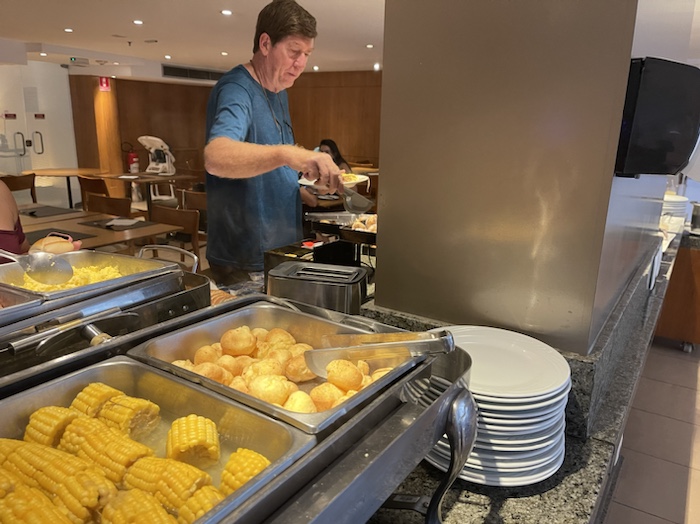 We are staying at the Meliã Paulista in São Paulo. We had a good breakfast there this morning. I have never seen corn on the cob on a breakfast buffet before.
