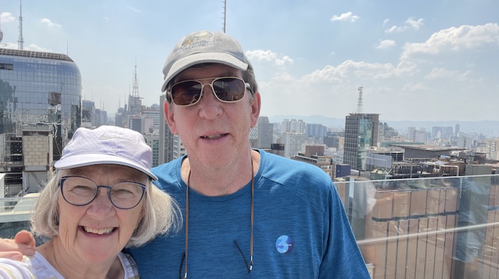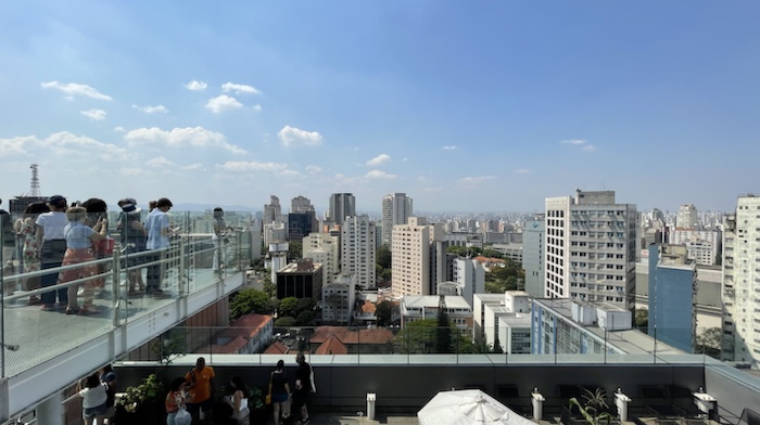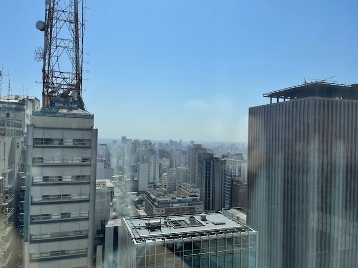 São Paulo is on the Tropic of Cancer. Spring is starting here. The weather has been hot. We walked about a mile down Avenida Paulista to the SESC building. they have a free viewing platform on the roof. Along the way we walked through Trianon Park.