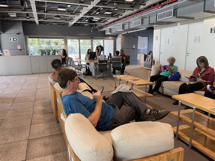 We had to wait a while to get tickets to go up the SESC building. They had a nice air conditioned lounge with free wifi for us to to wait in.