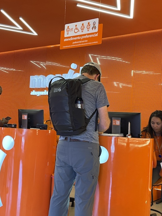 Duke got a number and waited a bit then started the rental process. When they were about finished the agent realized that we had booked the car to return it at Foz do Iguazu. Duke made the reservation in May and as he soon learned they closed their Foz do Iguazu office in June.