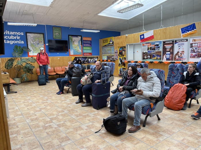 We did a lot today. We had breakfast at the hotel in Punta Arenas. About 9:30 we walked to the bus station and caught a bus to Puerto Natales. it was about a three hour ride through relatively flat grasslands. We saw guanacos and Duke saw rheas.